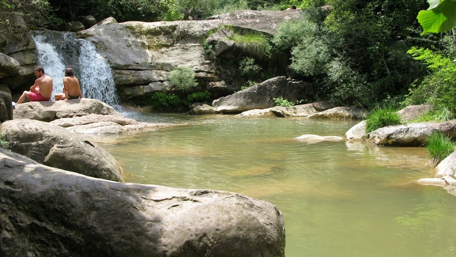 Pasado el río y yendo a la derecha se encuentra la riera de Collfred un buen lugar para refrescarse y disfrutar de la flora y fauna propia de los ríos de montaña.
