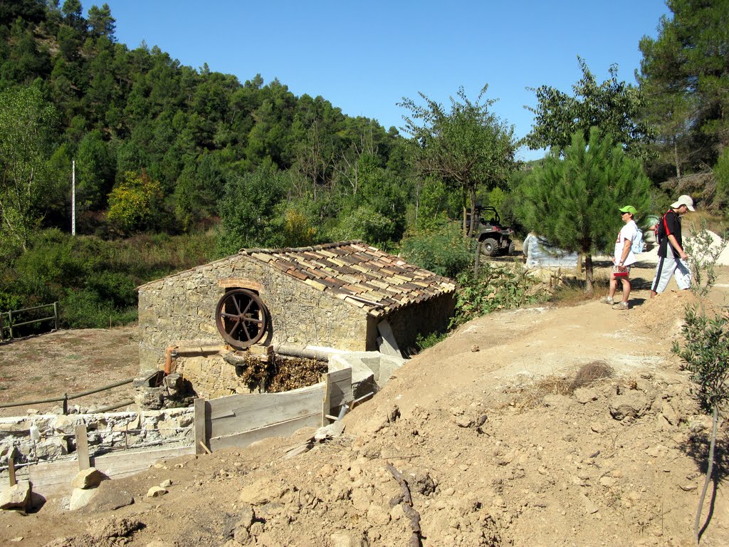 Por el mismo sendero que baja al torrente, dobla a mano derecha cerca de la riera y encontramos una edificación rural de pequeñas dimensiones: la Sinia de Can Valls. Recuperamos el sendero hasta una pista que cogeremos para cruzar la riera e iniciar la subida al pueblo. A media subida, encontramos una señal que indica la presencia de un Horno de obra y cogemos el sendero emboscado a mano izquierda.