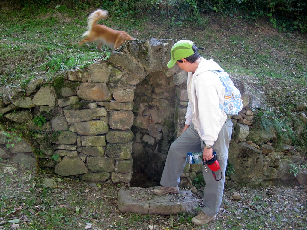FUENTE Y CAPILLA DE LA VIRGEN DE LOURDES. Esta fuente se construyó el año 1983 cuando se arreglaron los entornos de la capilla de Lourdes, inaugurada el año 1904. Dejamos a la derecha la casa de Lourdes y cruzamos el camino que conduce a esta casa. Siempre siguiendo las marcas blancas y amarillas, subimos por un sendero con pendiente hasta la carretera que lleva a Sant Antoni. Cruzamos la carretera desde la que podremos ver Serra Cavallera y el valle de Sant Joan de les Abadesses en dirección Sant Pau de Segúries con el Mas del Covilar y la colonia téxtil Llaudet. Continuamos subiendo por el PC-C60 hasta el mas Guixer cruzando un robledal con sauces.
