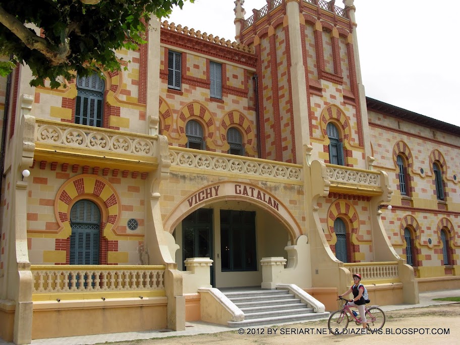 Balneario Vichy Catalán – El Hotel Balneario Vichy Catalán fue promovido por doctor Modest Furest i Roca a finales del siglo XIX y gozó de unos años de gran esplendor durante las primeras décadas del siglo XX. En 1881 el Dr. Modest Furest i Roca, después de descubrir las saludables propiedades del agua Vichy Catalán, decide construir el Hotel Balneario, que se inaugura oficialmente el 12 de junio de 1898. El edificio modernista, el más emblemático de Caldes de Malavella, fue iniciado en el año 1898. De estilo arabizante, presenta dos cuerpos en ángulo, ambos con elementos arabizantes pero uno de ellos, lo que se puede ver desde el exterior, mucho más ornamentado y vistoso. Está caracterizado por sus torres almenadas, las aberturas con arcos de herradura, el contraste cromático con los elementos de ladrillo visto y una entrada principal de arco parabólico. La otra fachada, más austera, presenta un cuerpo central sobresalido, donde está la entrada y tiene toda la planta baja porticada. En el interior del recinto hay una capilla dedicada a Sant Josép y a Sant Esteve.