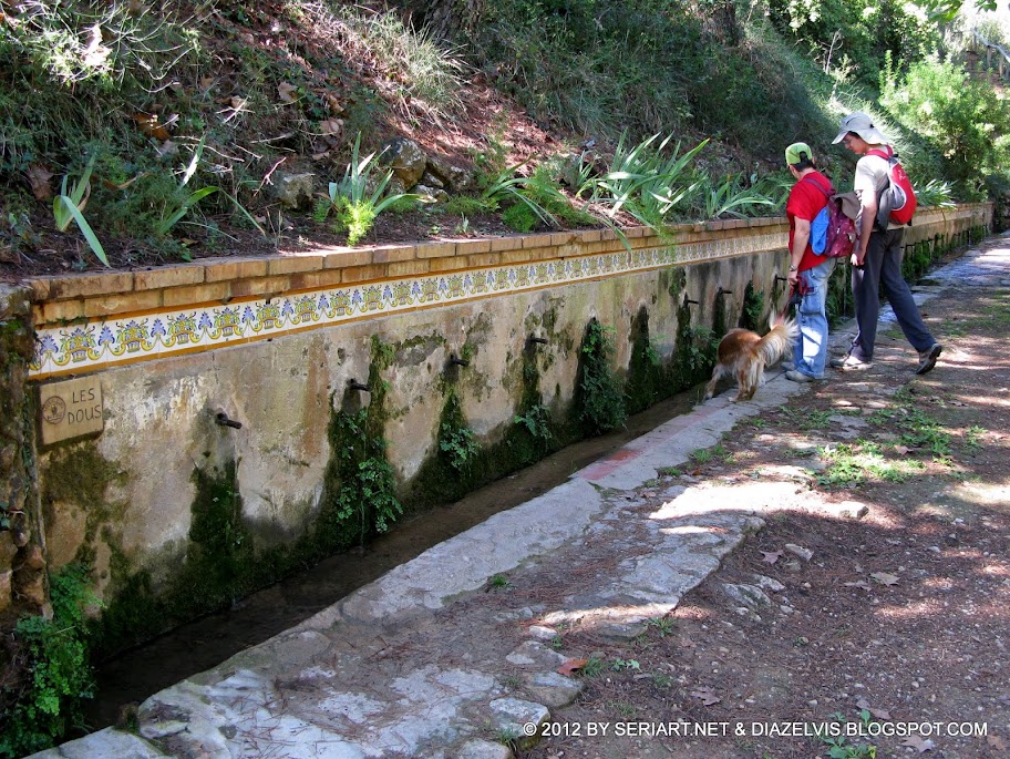 Continuando por el mismo camino y atravesando el arroyo encontraremos la Fuente del Omedes, posiblemente la más visitada debido a sus propiedades diuréticas; retrocediendo un poco y retomando el camino que bordea el canal, iremos a parar a la Font d’en Covenant, instalada en un bellísimo lugar rodeado de un pequeño bosque de plátannosta llegaremos a las fuente de Les Dous, posiblemente las más conocidas y emblemáticas de Torrelles, donde se encuentran treinta y cinco Fontetes todas alineadas, y el salto de agua que rellena el pélag.