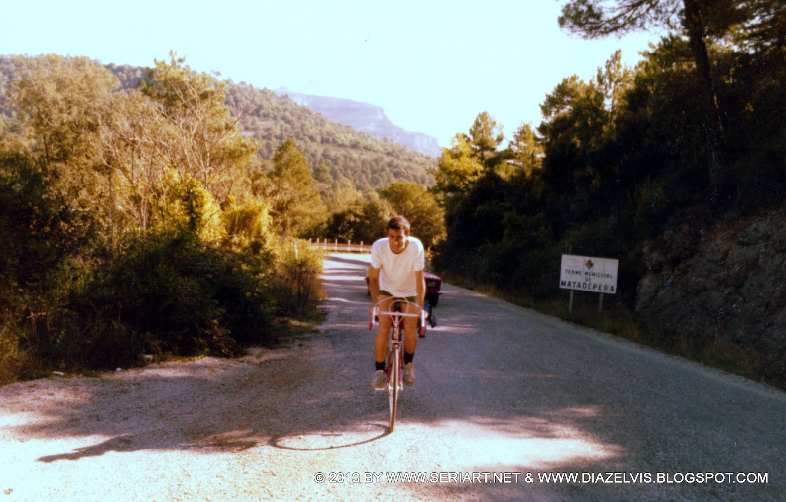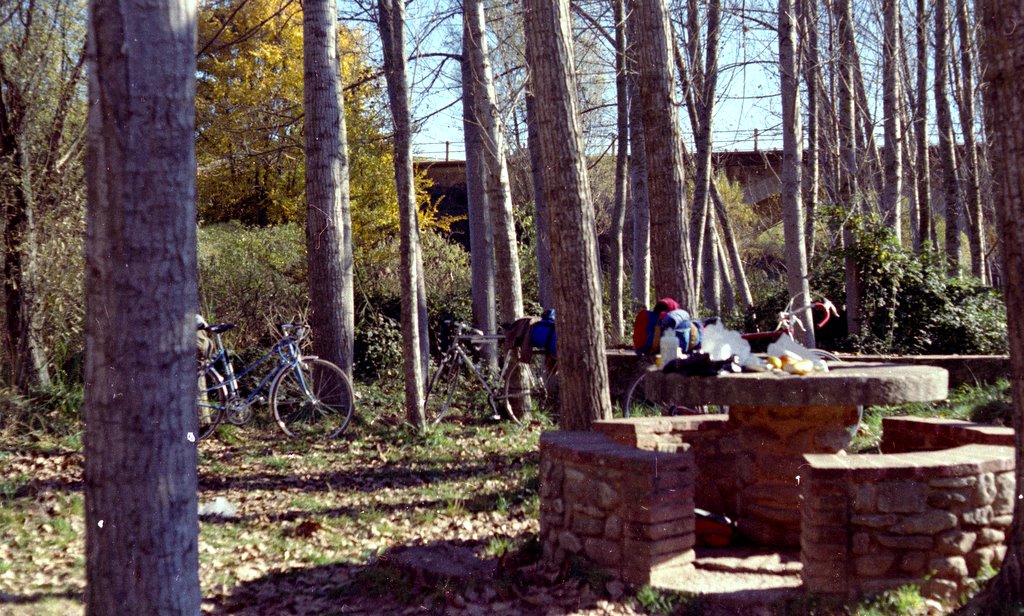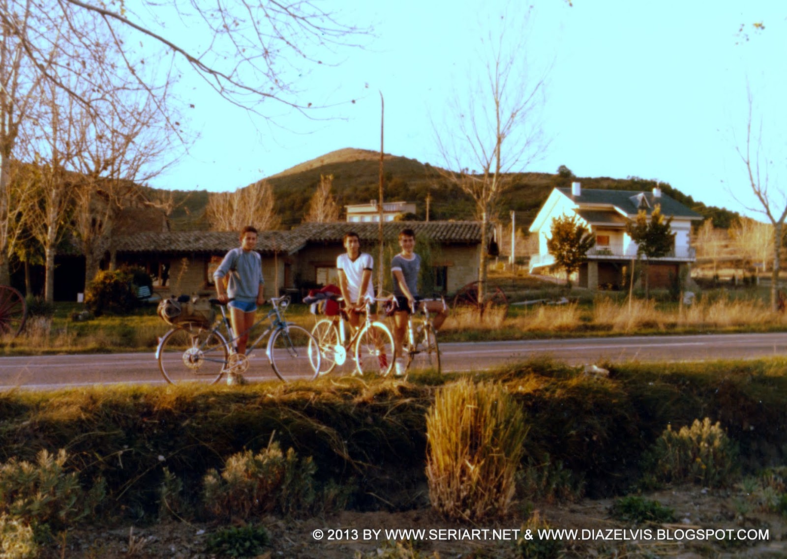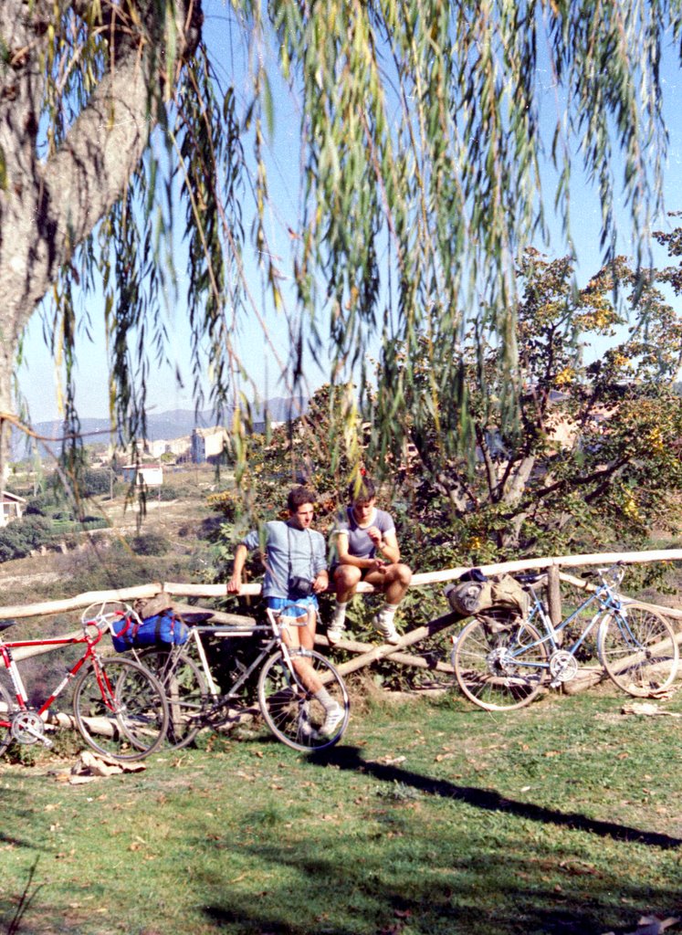 De pronto en un álbum de fotos, pasando páginas, aparecen las fotos de una ruta en bicicleta de los años 80’s muy especial para mi, ya que la hicimos tres colegas de la mili, justo para celebrar que la habíamos acabado. No pasamos una mala mili, sino más bien yo diría que fue un tránsito pasajero, te rompe la vida y lo que estabas haciendo en esa época y te deja con una incertidumbre de que harás una vez acabada, pero apenas me quedan recuerdos de ella, aunque el episodio del 23F nos pilló de lleno, para mi fue una anécdota apenas resaltable, solo recuerdo que cambie la turuta y el tambor por un Cetme.