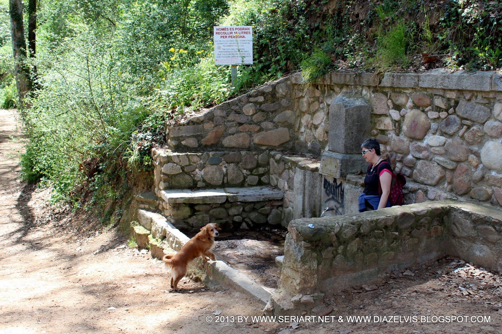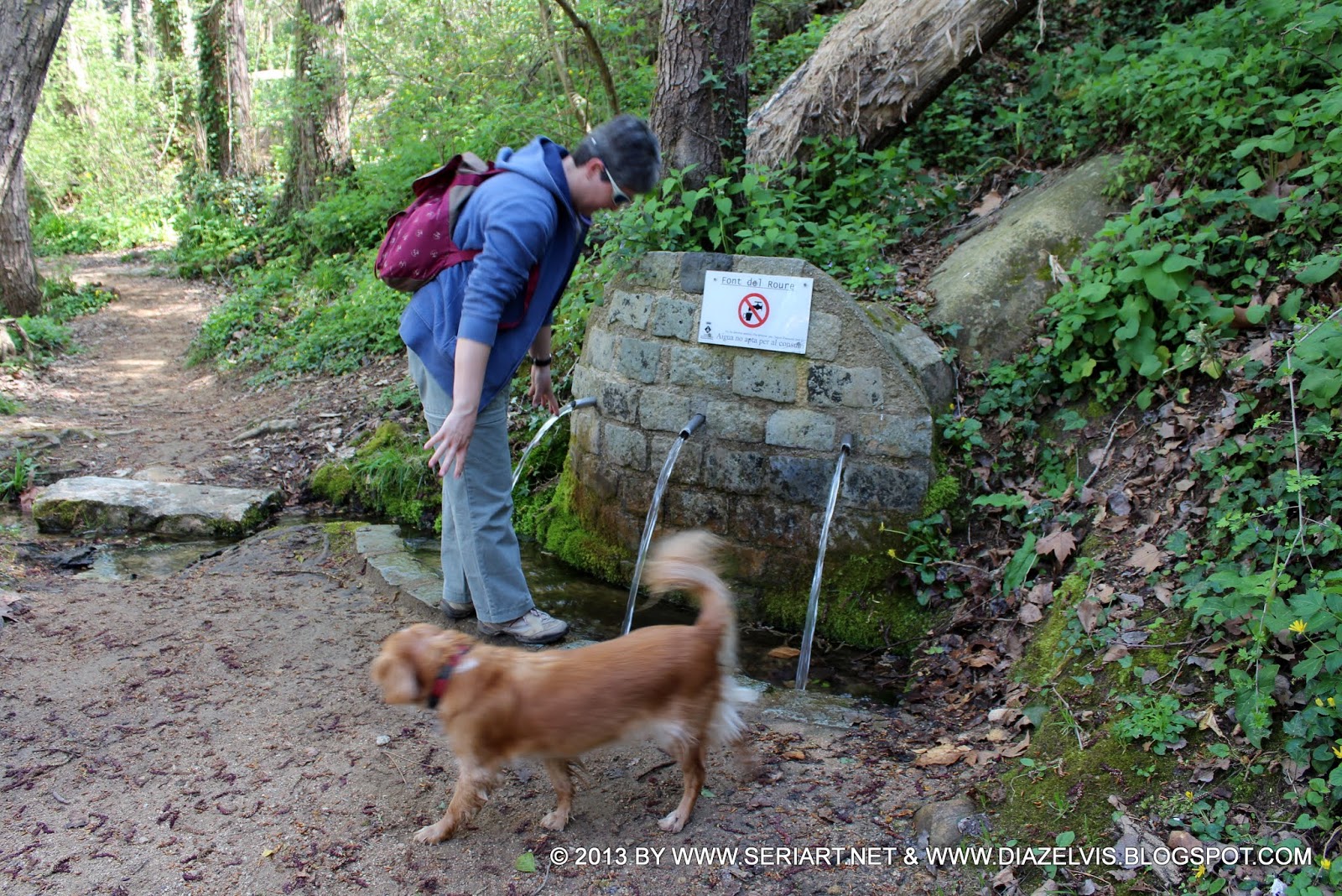 Asi que me planteo algo donde la Nico pueda mojarse y bañarse, no a sido difícil ya que están las rieras y ríos en muy buen estado, también las fuentes gozan de buena presencia y generosidad, gracias a las lluvias de Marzo en gran medida. Santa Coloma de Farners es la capital de la comarca de La Selva, y está situada en el centro de la misma, en la línea fronteriza entre la llanura y las montañas de Les Guilleries. Se encuentra a una altitud de 142 metros sobre el nivel del mar; dista 24 km de Girona, 90 km de Barcelona, y 30 km de la Costa Brava.