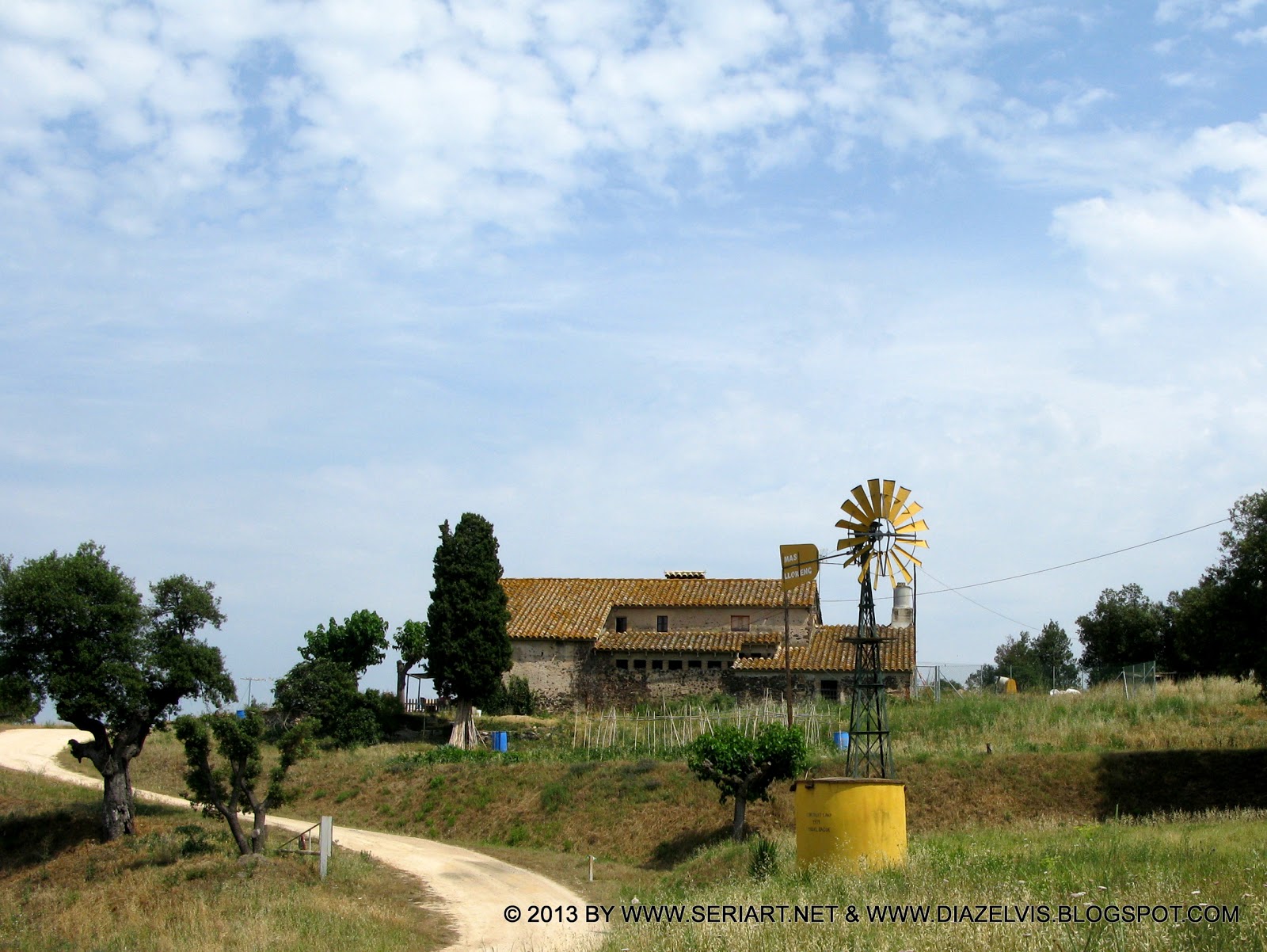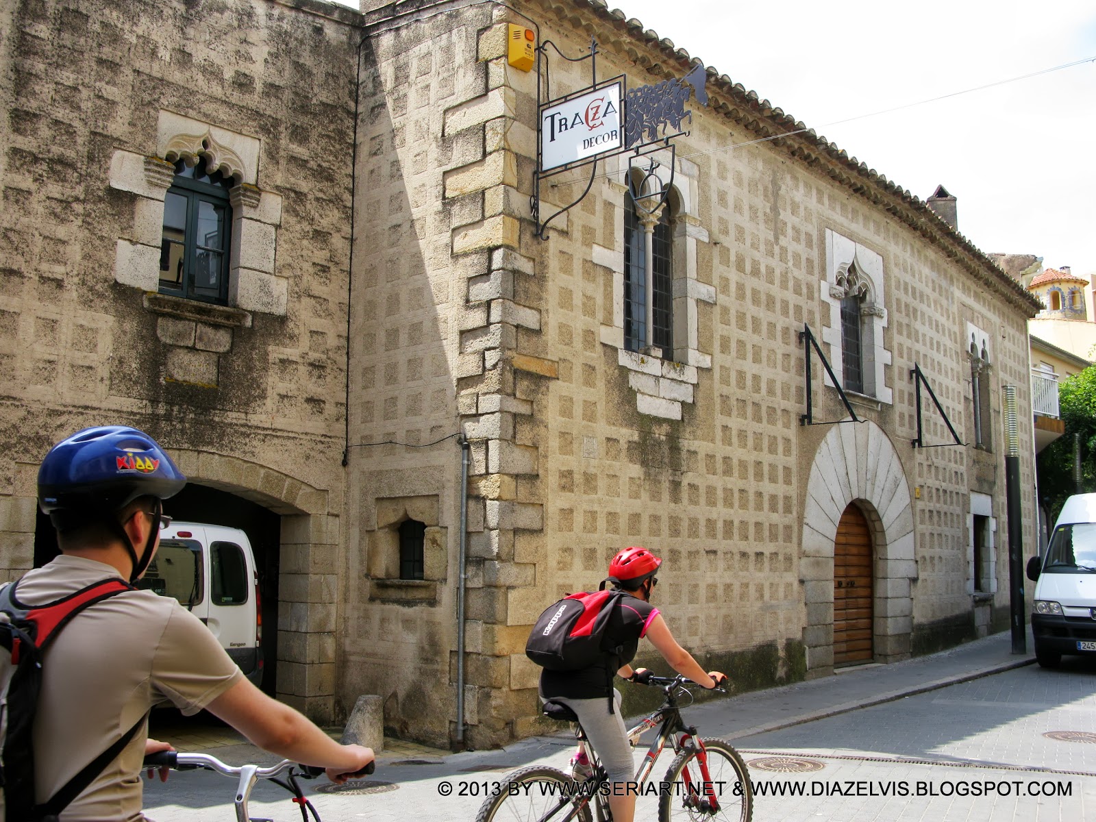 El camino va descendiendo entre bosques de pino rojo, robles, alcornoques, plantaciones de chopos y praderas pasando por varias masías. La atención se acentua al llegar a la masía de Ca l’ Amatller, pues esta llena de Tipis y Yurtas ( cabañas indias y mongolas ) que son realmente bonitas y llamativas. Al llegar al puente de Puente de Can Santos dejamos de seguir el camino del Pou de glaç que va por la izquierda y tomamos hacia la derecha hasta la Església de Martorell. Después seguiremos camino hacia Can Masllorenç. Desde aqui teniamos previsto campo a través llegar hasta la Creu pero nos encontramos cadenas en los caminos y decidimos ser buenos chicos y respetar esas limitaciones. Para solventarlo no nos queda más que llegar hasta la urbanización Maçanet Park y rodearla hasta la Creu. Desde aqui bajamos hasta la Torre de Marata y Can Xarboet. Ya toca bajar de nuevo al pueblo de Maçanet. Hacemos un recorrido turístico pasando por las mas destacadas edificaciones y después tomamos rumbo hacia el Molí para llegar hasta la Torre de Cartellà. De vuelta pasamos por Can Miquel Ferrer Vell y frente a las ruinas de Can Picó y volvemos hacia Maçanet por el Palau de Foixà.