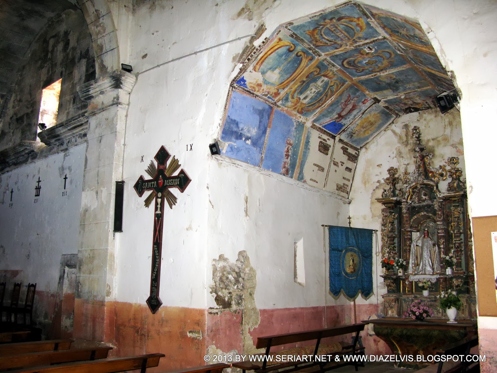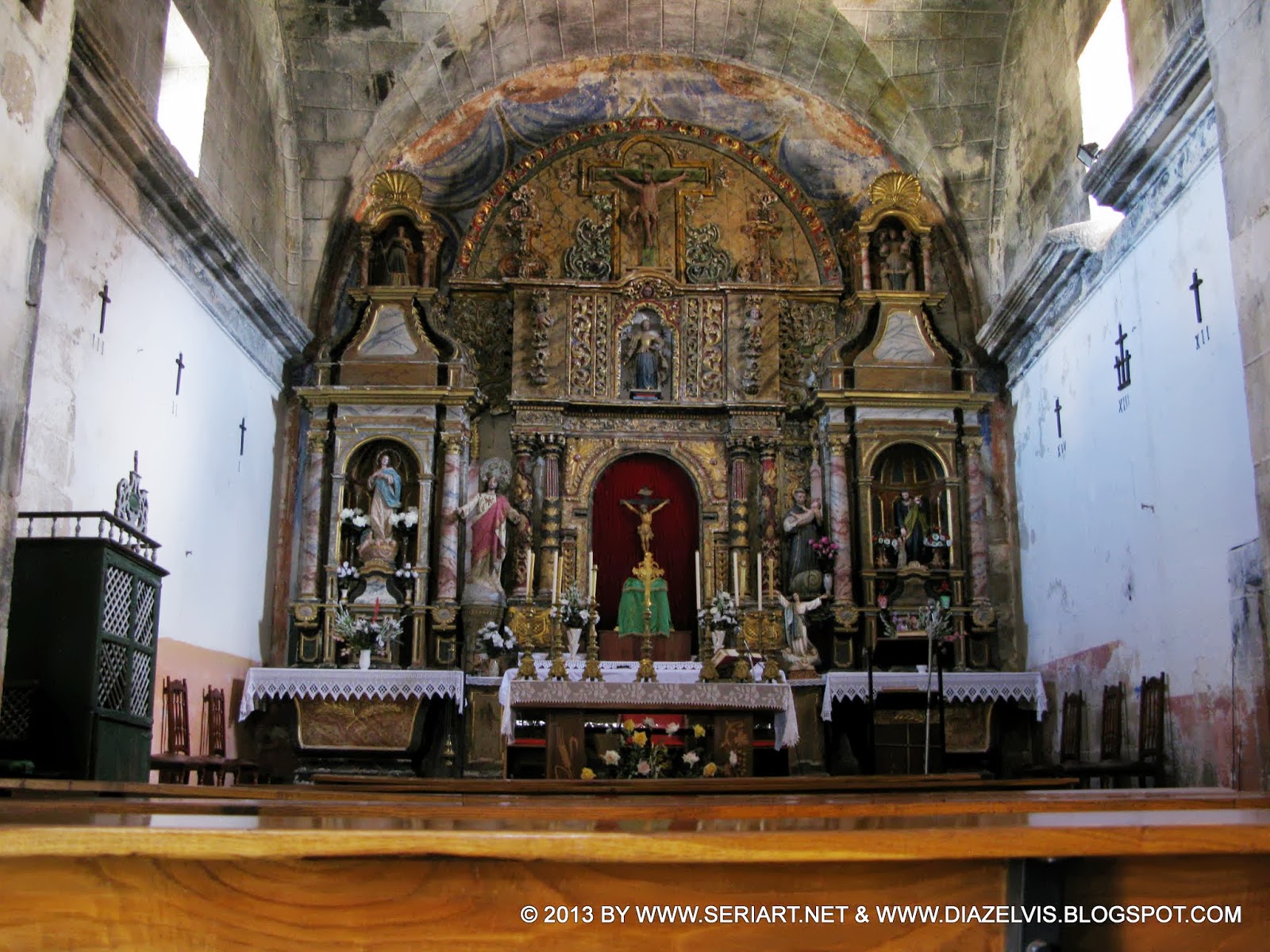 La barroca imagen de la patrona, alojada en una hornacina, fue sustituída en el altar mayor por otra de la Purísima.Presbiterio moderno y del lado de la Epístola capilla dedicada a la Virgen del Carmen, cubierta con bóveda en la que se representan imágenes alusivas a la historia del Carmelo. Un escudo campea en la tapiada puerta del muro sur, en cuyo tímpano figuran dos lobos. Su fachada conserva la esencia del románico en sus toscos muros, los dos contrafuertes y el pórtico de entrada. Posteriores reformas incorporaron tres arquivoltas apuntadas en la portada, asociadas al gótico, y un campanario que corona la iglesia.