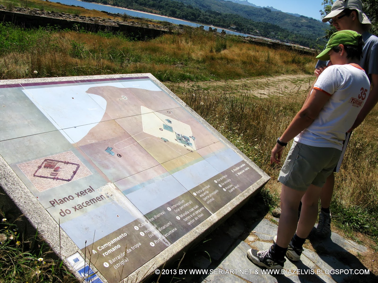 El asentamiento ocupa 3 hectáreas y su disposición es la clásica: forma rectangular y dos vías principales ortogonales, el cardo (en este caso de 4 m. de anchura) y el decúmanos. Posee una muralla de esquinas suavizadas y fábrica de perpiaños graníticos (en latín, opus vittattum), con 3,20 metros de altura y almenas semicilíndricas. Las torretas sobresalen aproximadamente 10 cm. desde las almenas. La muralla está separada de las construcciones del interior por un intervallum de 11 metros. Hay un foso exterior a la muralla con forma de “V” en profundidad, de 4 m. de ancho por 3 m. de fondo. Tiene 4 puertas principales, las que corresponden a los extremos de las dos calles citadas; se han excavado dos de ellas: la Principalis Sinistra y la Decumana. La primera posee dos vanos y la segunda sólo uno. Se han identificado tres barracones, líneas de habitaciones en edificios enfrentados en torno a un patio con cisterna para recoger el agua de lluvia. Las estancias, de 3×3 metros y preparadas para albergar hasta 8 soldados, tienen un suelo de tierra batida, están divididas en dos zonas. Las puertas y oquedades están al sol.