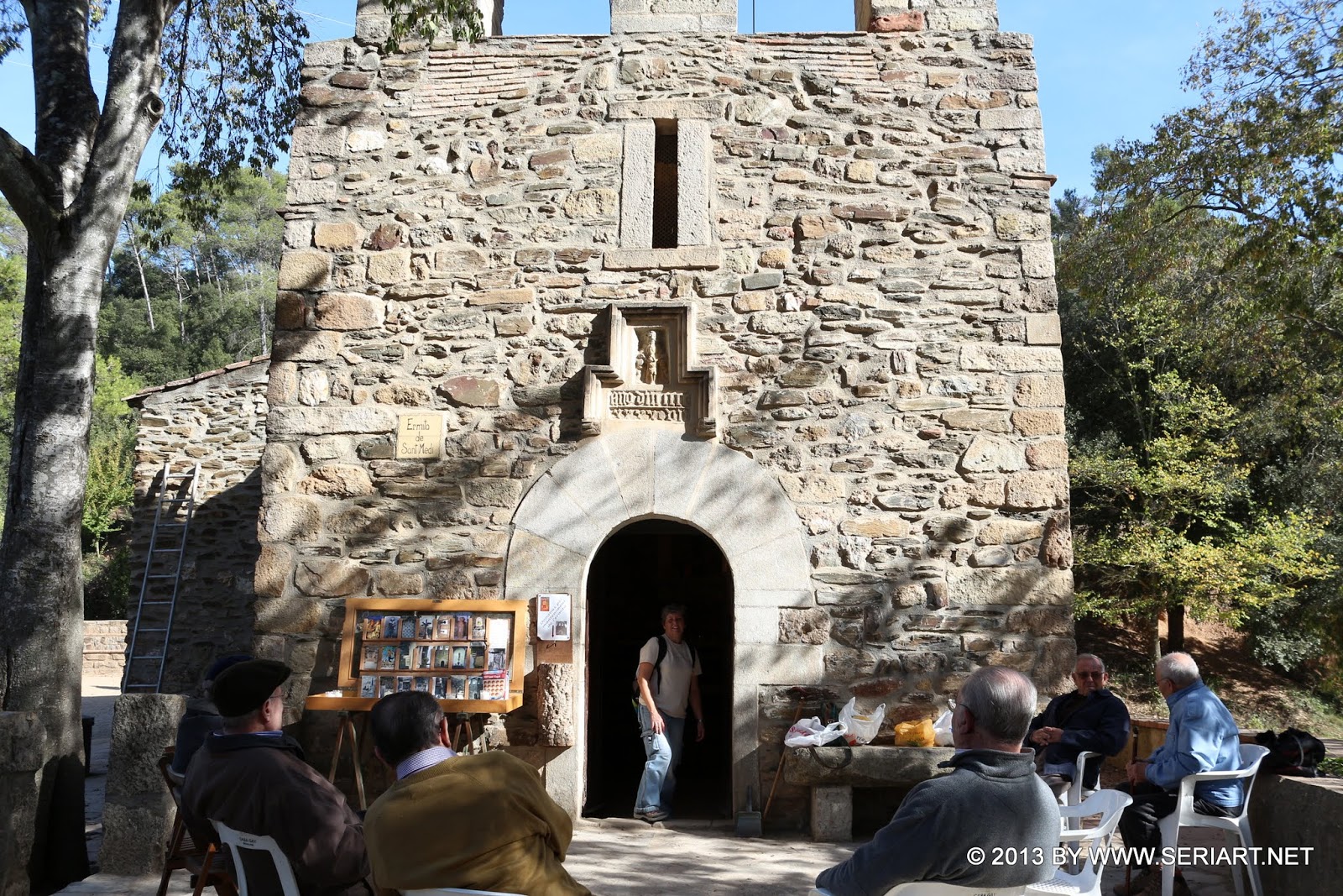 Después de un rodeo y pasar por una fuente y una zona de picnic con mesas y bancos de madera se llega finalmente a la ermita románica de Sant Medir, delante de la cual hay una fuente, . la fuente del camp del miracle. Encontramos abierta la ermita y aprovechamos para hacer una visita, no es frecuente encontrarla abierta. Se regresa al punto de salida por el camino que baja del camp dels miracles hacia el cruce de Can Gener y desde allí el mismo camino que al subir por el mismo recorrido.