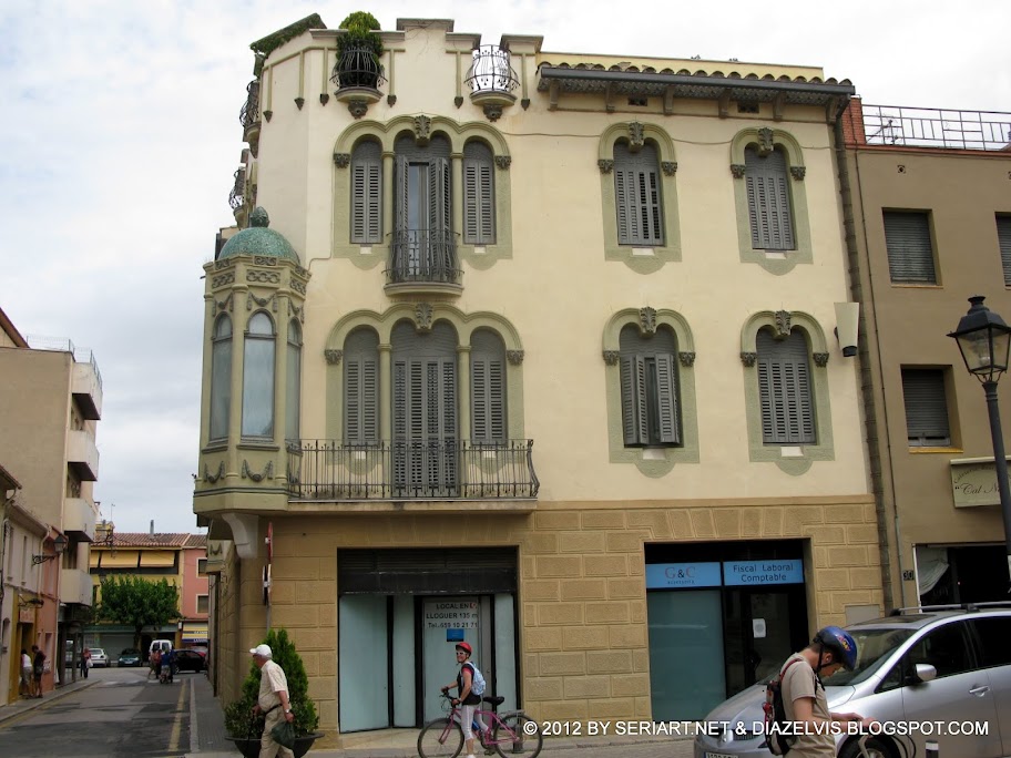 Casa Rosa – Edificio formado por dos cuerpos bien diferenciados, uno más ancho, con una destacada torre y un estilo más convencional. El otro presenta un original portal en forma de as de picas, una ventana geminada con barandilla bombeada de hierro y un coronamiento escalonado, todo ello decorado con baldosas cerámicas. La fachada está pintada de rosa, de donde le proviene el nombre. Actualmente pertenece al Ayuntamiento, que tiene alojadas varias dependencias municipales. En una sala hay una pintura de gran formato de Antoni Utrillo relacionada con las termas romanas. Se conoce también como Ca l’Estapé o casa Diotallevi.