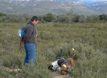 A las 07:30 horas, los miembros de la organización recibían en el bar Fono’s de la Senia (Tarragona) a Juez, asesorato y participantes de la prueba. Siete lotes fueron los inscritos, un total de 26 perros, nosotros tuvimos que participar con solo dos de los basset Hound, Coco y Rana, ya que Pistacho continuaba indispuesto y Vilma entró en celo el día anterior.El fuerte viento de mistral que sopló durante toda la jornada secó excesivamente el terreno dificultando notablemente las labores de rastreo de todos los canes en las zonas que de por sí no mostraron mucha densidad de caza.Aunque la organización, esta vez a cargo del Club del Beagle, fue impecable, igual que el día de Ventalló y pasamos un día entre sabueseros muy agradable, no se pudo disfrutar de largas persecuciones por las dificultades expuestas. Hasta 10 perros se quedaron sin puntuar y solo dos llegaron a los 110 puntos. Nosotros, pudimos levantar dos conejos que fueron vistos por el Juez, pero que no dieron juego, buscando rápidamente la madriguera y que les valieron 100 puntos a la Rana y 105 al Coco.