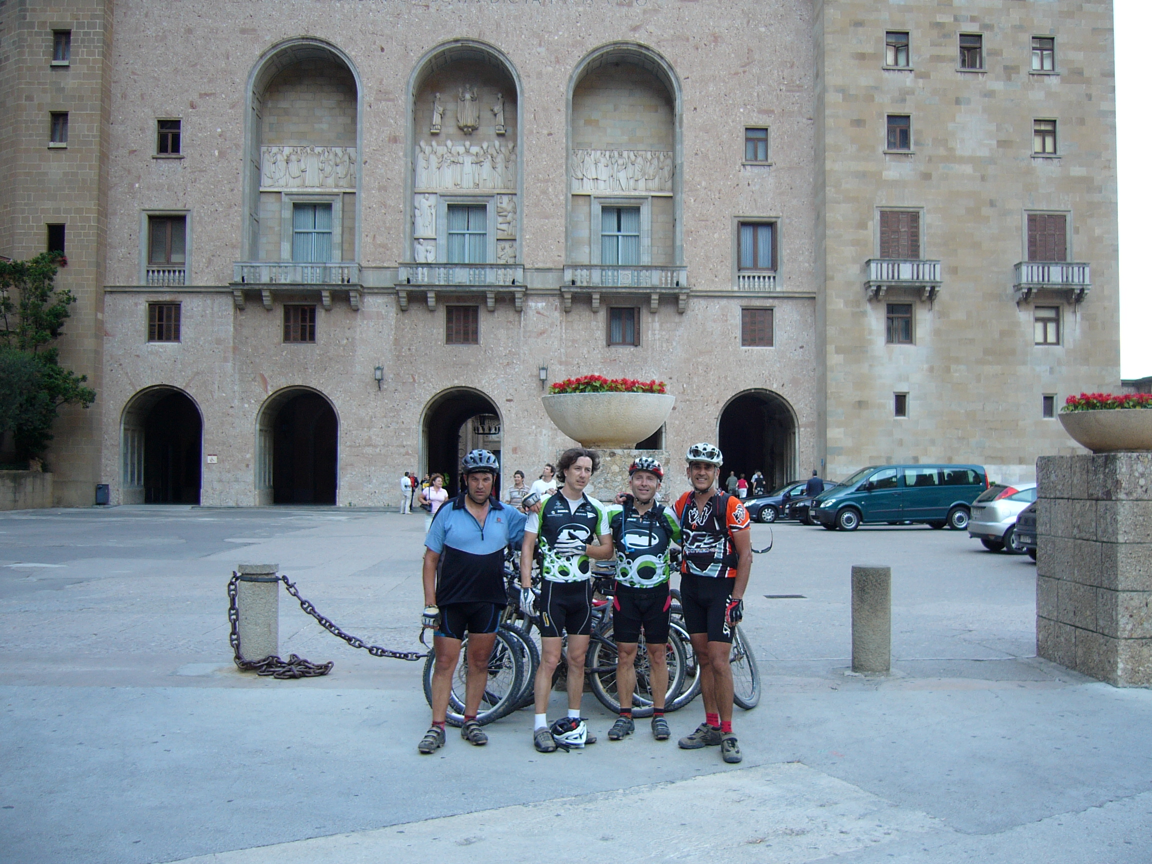 Les parades, vam començar a fer parades a partir del Km. 60, eren paradetes curtes, per reposar aigua, menjar alguna cosa de fruita o pastes, el dinar el vàrem fer a Piera, sobre les 14h. i vam estar una horeta, la següent parada de uns 20min va ser al Bruc i d’allí, xino xano fins al parquing del coll i carretera fins a Montserrat.