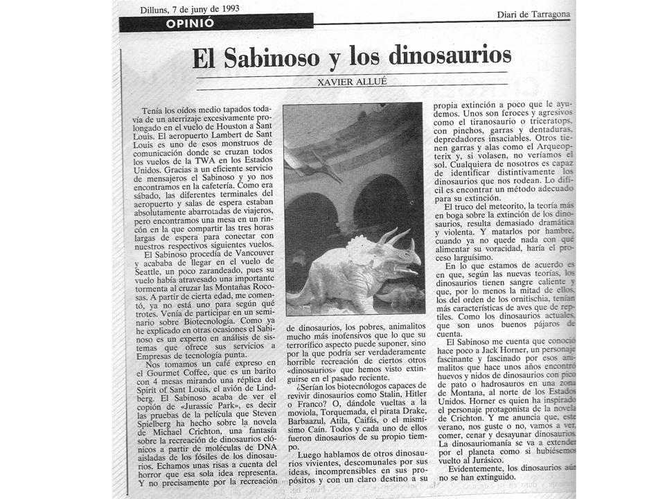 Este tiene que ver con lo que inmediatmente después se convirtió en una moda mundial; los dinosaurios, a cuenta de la enorme repercusión que tuvo la obra de Michael Crichton y la subsiguiente película de Spielberg "Parque Jurásico".