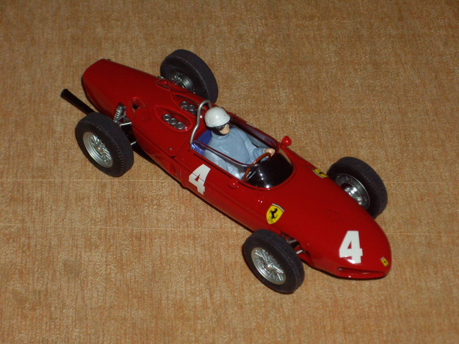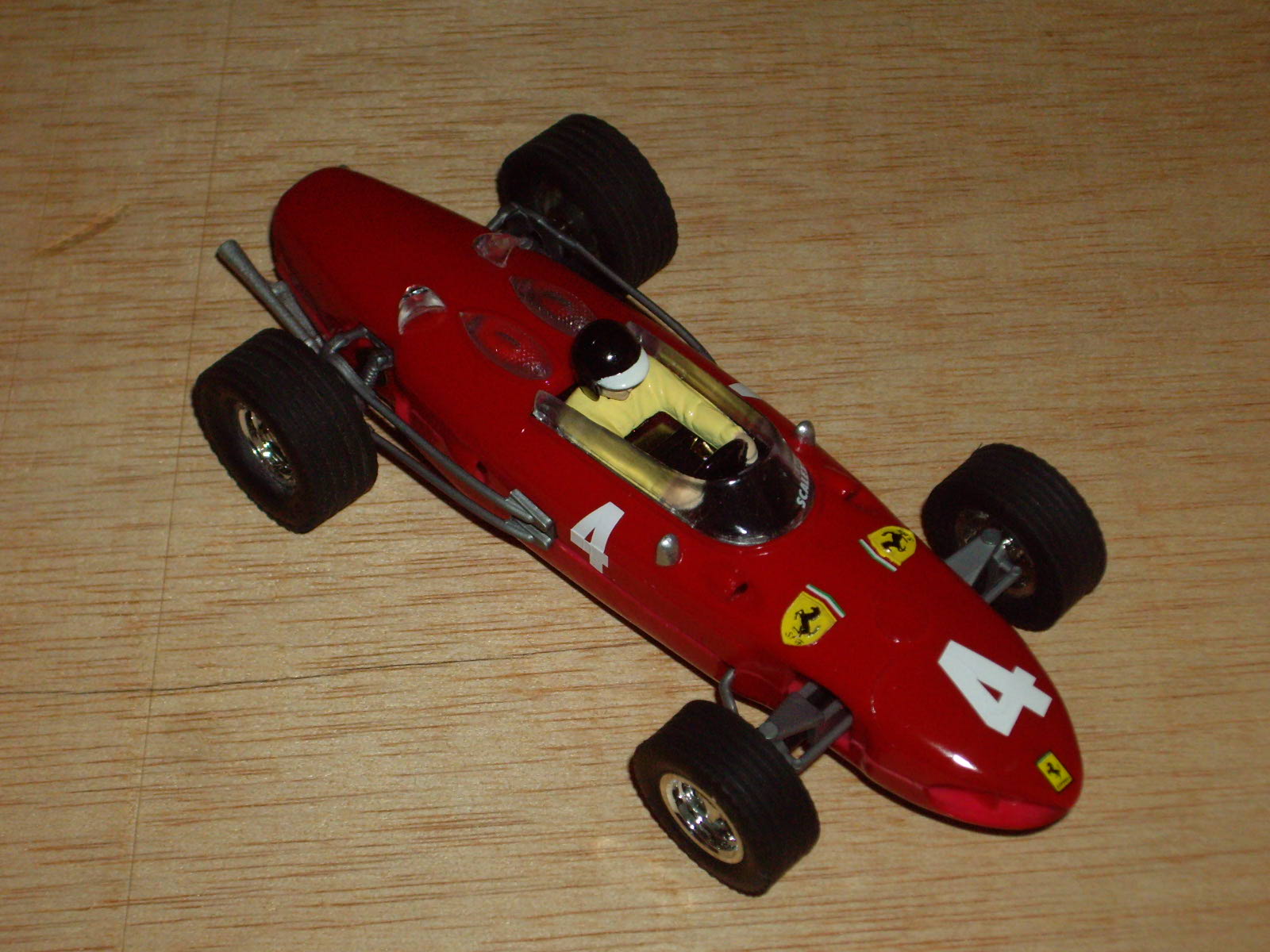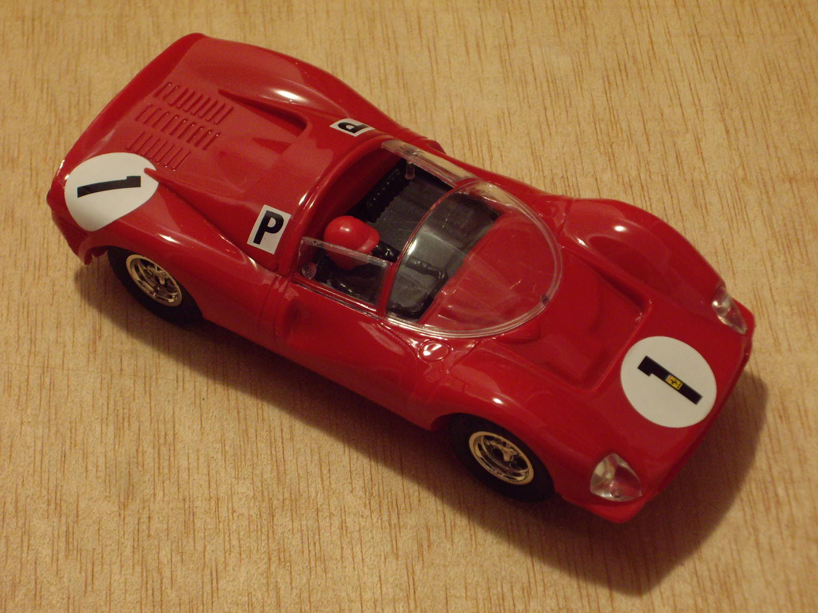 Carrosseria: té un bon aspecte general, amb les formes força ben assolides. S'intueix en alguns punts errors d'escala, sobretot pel que fa al lateral, que sembla més baix del que és en realitat. Els llums i cromats fan el fet. Pot ser el neteja parabrises i els tubs d'escapament tenen un aspecte excessivament de joguina. Les nombroses obertures que hi ha al llarg del frontal i lateral, estan ben practicades i perfilades, però a la part posterior, darrera del pas de roda hi ha una que només està simulada. Al mercat es podia trobar en diversos colors, dos en vermell, clar i fosc, verd, grog, blau marí i platejat, però s'han fet algunes edicions especials de fires i competicions amb tirades molt limitades. El tipus de decoració varia segons el model: en els primers és a base d'enganxines, tant dels dorsals com els escuts, les matricules, etc., mentre que en models posteriors ja apareix la tampografia. La safata del pilot és molt austera, d'un sol color i amb relleu dels seients, el volant i la palanca de canvis. El pilot és d'un sol color, o blanc o blau cel, amb un casc que intenta ser una reproducció de l'estimat tipus jet d'EXIN, però sense pintar les ulleres del pilot. Destaca la gran lleugeresa del conjunt. La carrosseria es fixa al xassís mitjançant un únic cargol tipus Phillips negre o galvanitzat, situat a la part posterior, just entre els dos tubs d'escapament. En els models tampografiats, la carrosseria està pintada, però en els altres, el color el dona el mateix color del butirat, com passava en els antic cotxes d'EXIN.