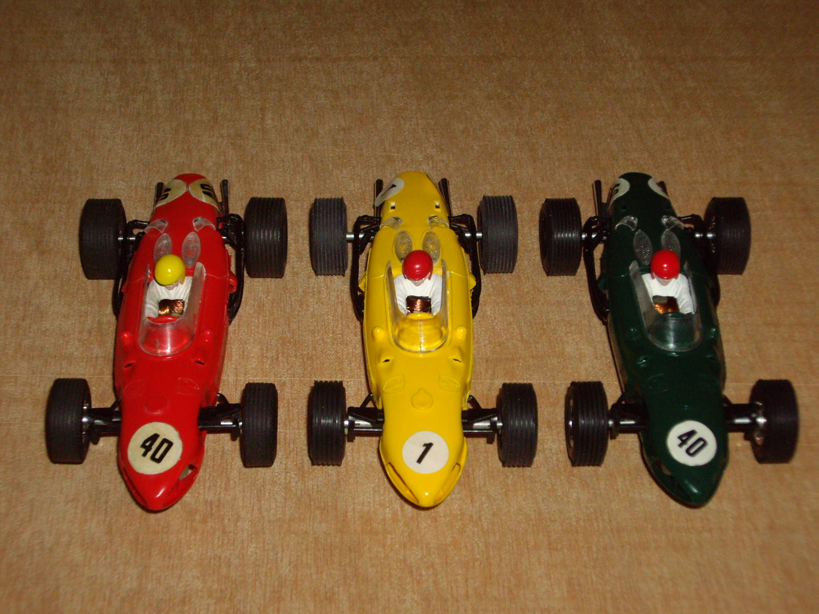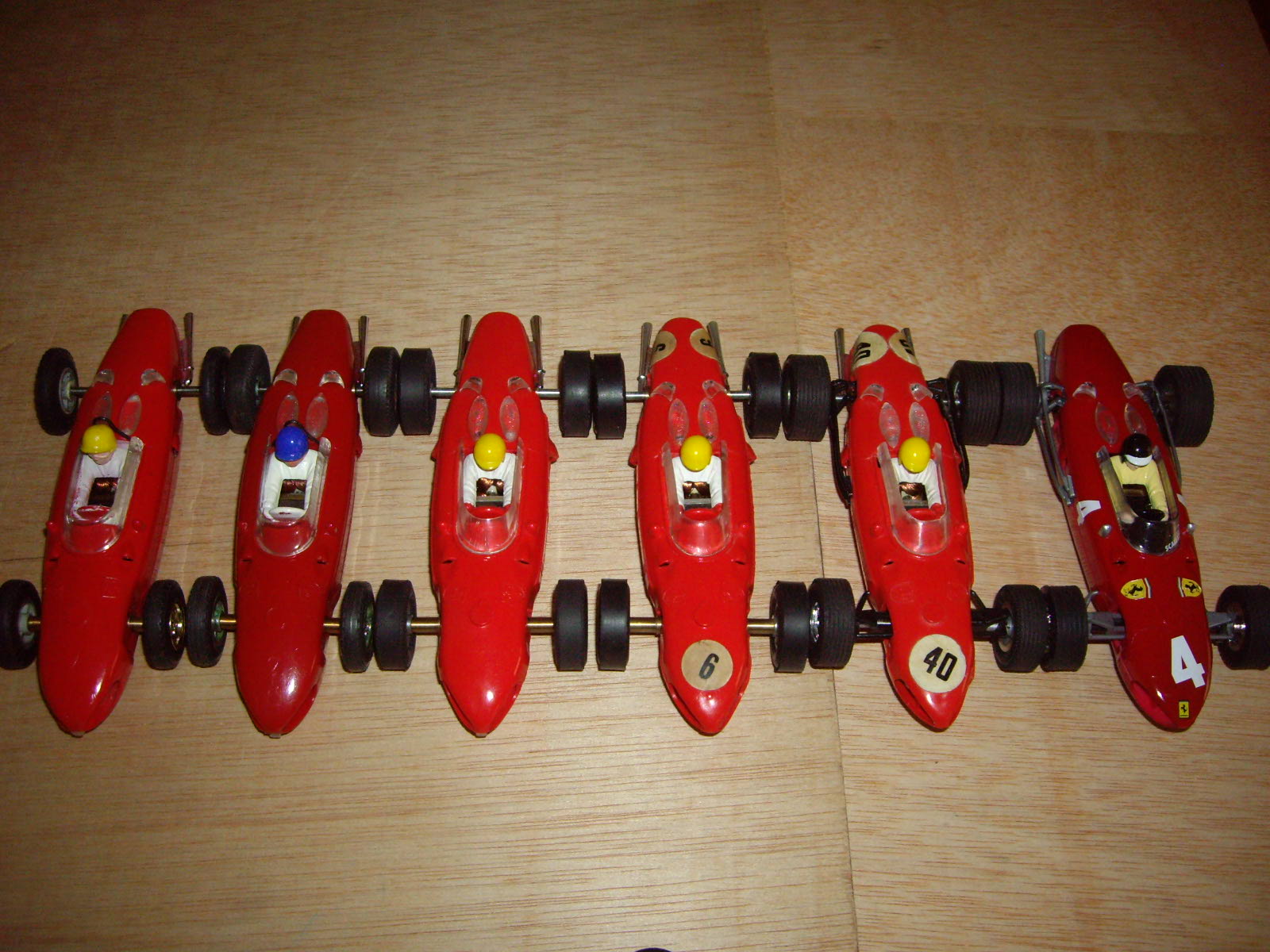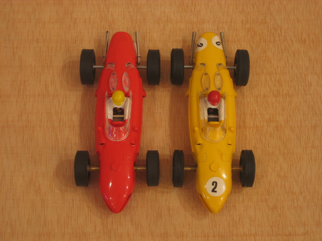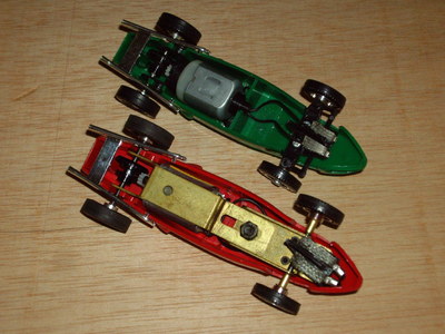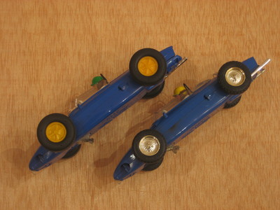 Aquestes dues versions de xassís no coincideixen exactament entre els models tampografiats i pintats, i els que no ho estan. El cotxe vermell clar, primer en sortir al mercat, porta la carrosseria sense pintar i el Mabuchi pla, i la resta menys el verd, estan pintats i porten el xassís evolucionat. El verd és el que en podriem dir un híbrid, ja que porta el nou xassís però encara no té la carrosseria pintada i tampografiada.