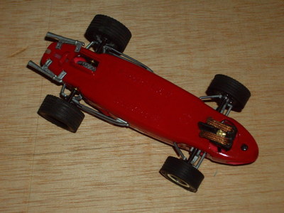 La que va sortir després al mercat, ja més actualitzada, permet muntar un Mabuchi de caixa curta de 15.000 rpm. Li cal però dos petits adaptadors, anterior i posterior, per enllaçar amb el xassís, que s'ha vist modificat en el seu suport anterior tot i que es mantenen les fixacions del Triang. Aquest canvi de motor permet l'aparició d'un iman de neodimi amb forma de botó. Segurament perque sóc un purista, però crec que si voleu donar una volta amb un d'aquests cotxes, el que primer heu de fer és treure l'iman, i pilotar-lo a tacte.