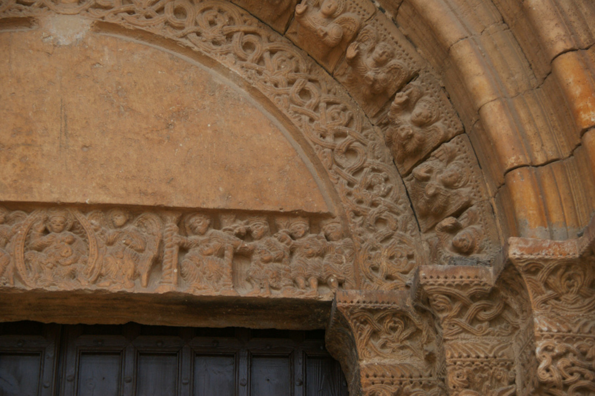 Detall de la façana de l'esglèsia de Sant Ramón - inicialment de Santa María - S.XIII El Pla de Santa Maria